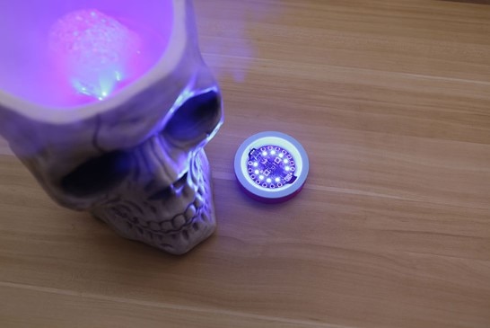 nOOds can be powered directly off a 3V coin cell such as a CR2032. This won’t be as bright as with a “proper” power source, but for small items and props it’s a great effect. Because these cells are inherently current-limited, no resistor is needed.