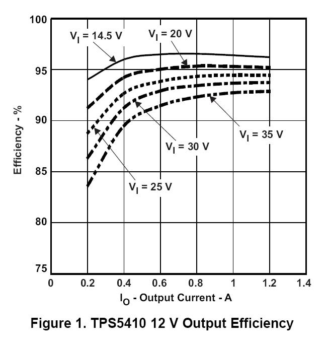 >96%, 14.5V in, 12V @ 0.4 ~ 1.2 A